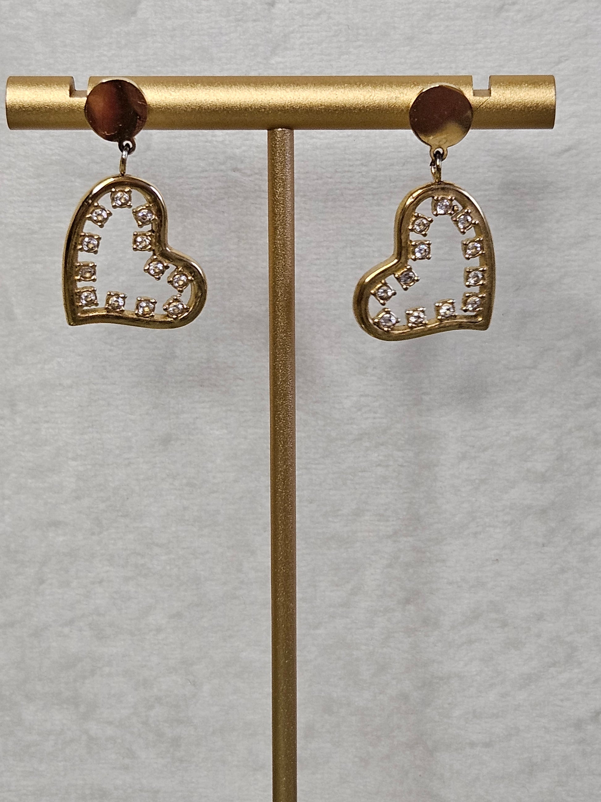 Ces boucles élégantes arborent une forme de cœur en métal finement travaillé. À l’intérieur, une ligne de strass blancs suit la courbe du cœur avec finesse, captant la lumière à chaque mouvement. Un bijou à l’éclat intemporel, parfait pour apporter une touche de grâce et de brillance à toutes vos tenues.