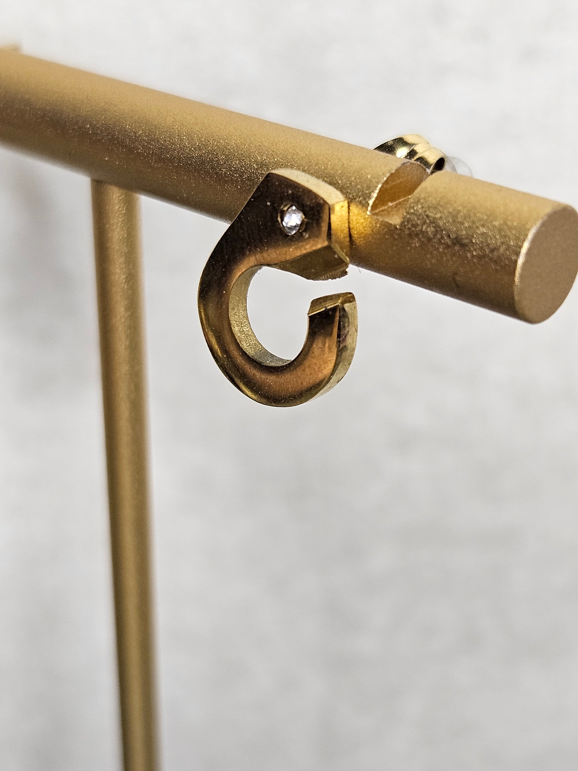 Apportez une touche de rébellion élégante à votre look avec ces boucles d’oreilles en acier inoxydable, conçues dans un style effet menotte. Chaque boucle d'oreille est finement travaillée pour épouser l’oreille, avec un design moderne et raffiné, et un strass serti qui capte la lumière à chaque mouvement.