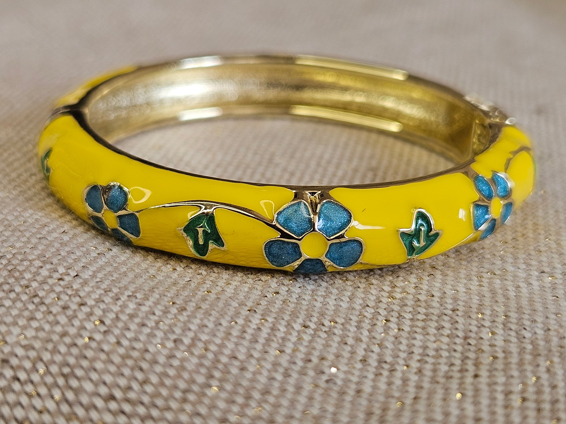 Ajoutez une touche de gaieté et de fraîcheur au poignet de votre enfant avec ce jonc en teinte jaune soleil, délicatement orné de fleurs bleues. Ce bijou coloré évoque la joie de vivre et les beaux jours, parfait pour les enfants qui aiment la nature, les couleurs et les petits détails qui font la différence.