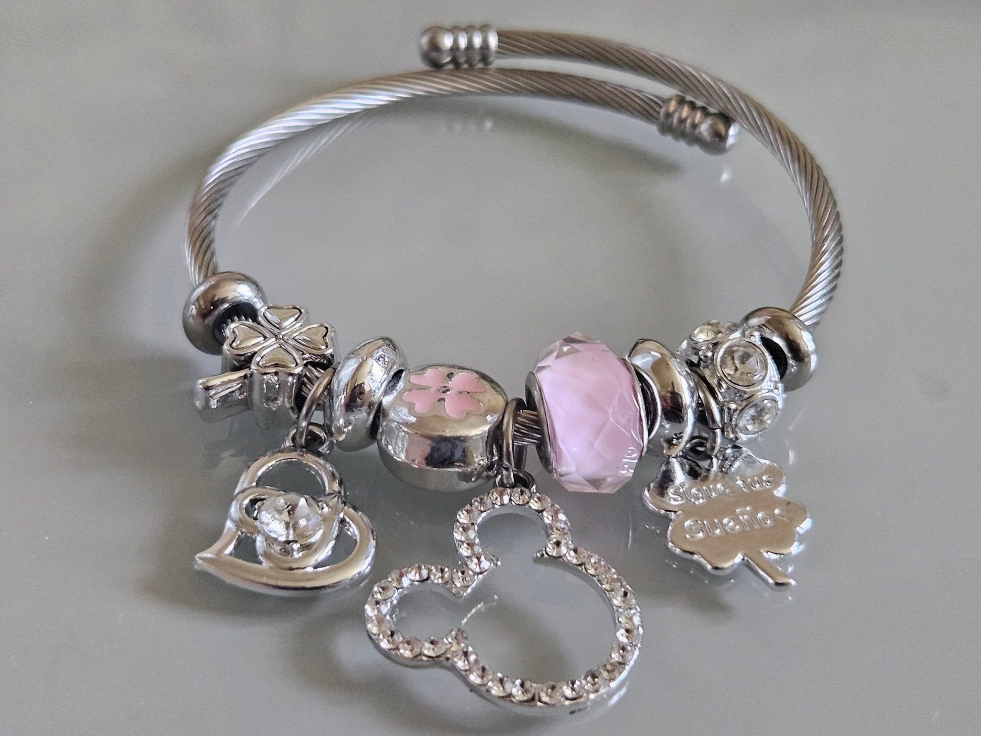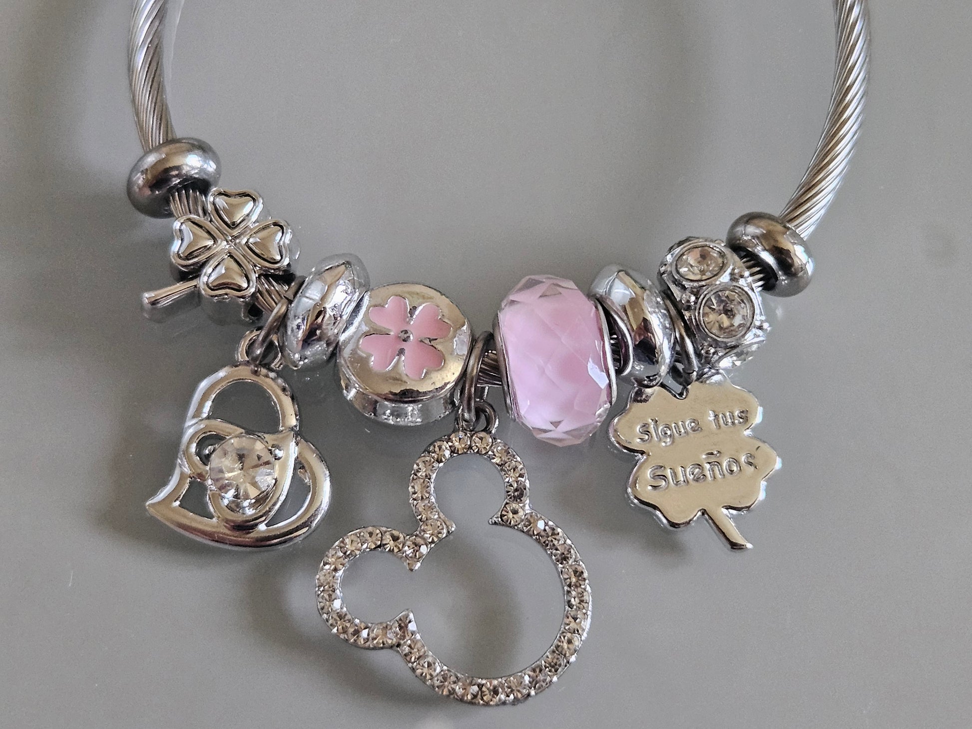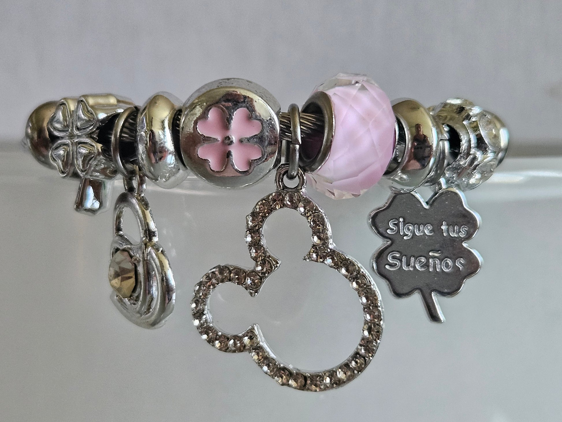 Laissez la chance et les rêves vous guider avec ce magnifique bracelet argenté, orné de charms délicats et porte-bonheur.