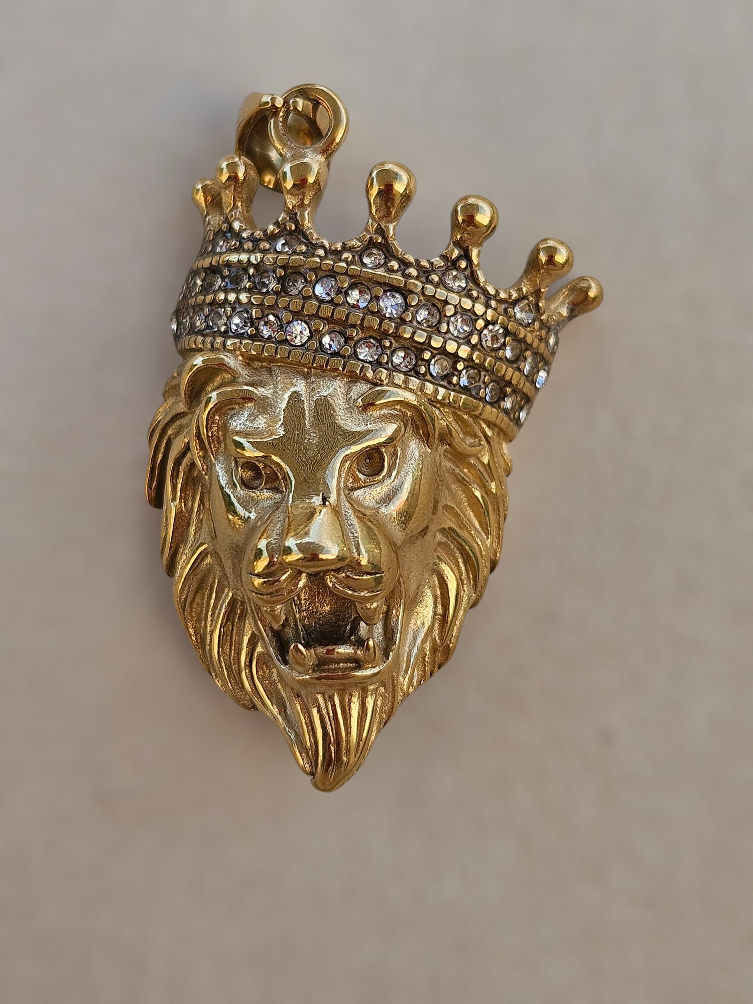 Ce pendentif lion en acier doré ne passe pas inaperçu, avec sa crinière détaillée et sa couronne majestueuse sertie de strass étincelants. Chaque pierre capte la lumière comme un rappel silencieux de ton autorité naturelle. Le roi est là — fier, imposant, et sûr de lui. Un bijou qui allie puissance animale et éclat royal, pour ceux qui règnent sur leur monde avec style et assurance.